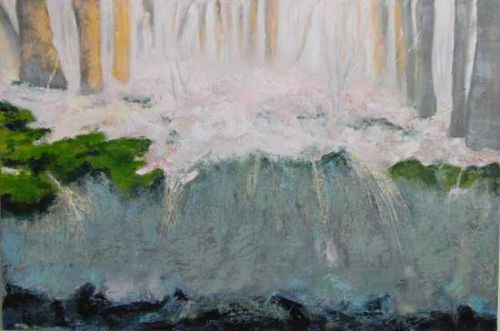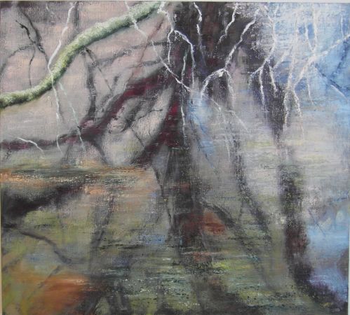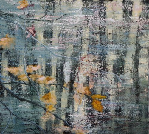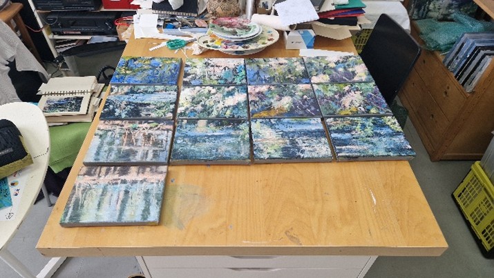 Daar was ook een meertje waar de zon op scheen. De kleuren veranderden het beeld voortdurend doordat de zon gedurende de dag verschoof. Door de lichtval zag ik steeds iets anders. Ik kon niet meer stoppen met het fotograferen, zo mooi was dat. Daar is toen mijn eerste waterseriewerk begonnen: Mérigot. Dat werden uiteindelijk 100 schilderijen. Ik werkte groot, 120 × 150 cm en ook in het formaat van 160 × 140 cm. Ik ging in series werken en maakte later ook een serie genaamd Sylverdale, naar aanleiding van een wandeling in Engeland en een serie met de titel Herinnering naar aanleiding van het overlijden van mijn moeder in 2017. En nu dus de serie Leidse Hout.”