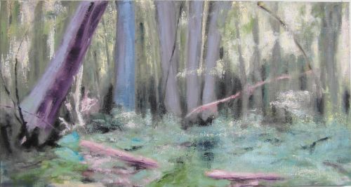 Fenny van de Wal (1951) maakt natuurseries in olieverf op doek. Impressies van parkachtige omgevingen in de bergen of in het vlakke land inspireren haar, vooral als de zon er haar licht over laat schijnen. Die maakt de natuur veelkleurig. En als daar dan ook nog water is, wordt ze helemaal blij van de weerspiegeling van de omgeving in het water, ook weer aangelicht door de zon. Inmiddels hoeft ze haar inspiratie niet ver meer te zoeken: ze ontdekte nog niet zo lang geleden de Leidse Hout waar ze nu kind aan huis is, op 10 minuten fietsen van haar atelier aan de Haagweg in Leiden.